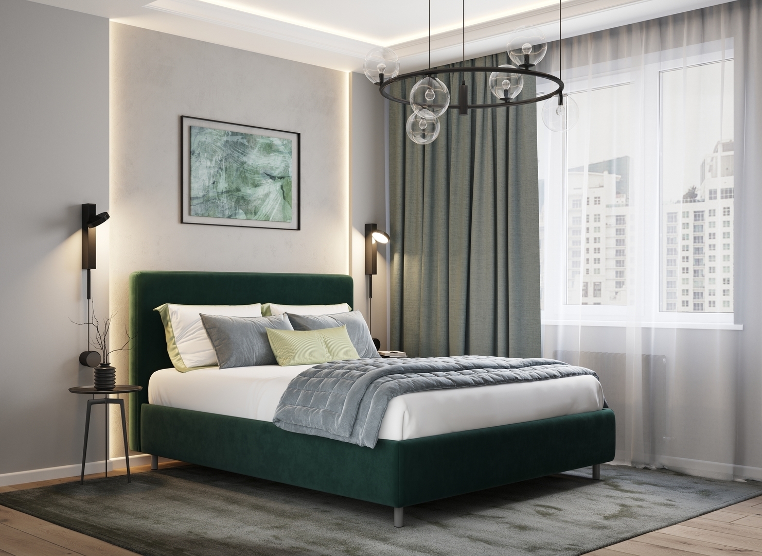 Творческий подход к выбору обивочного материала меняет образ дизайна. Велюр за счет своей бархатистой фактуры привносит в пространство шика и утонченности. Шенилл дополняет оформление спальни природными текстурами, создавая атмосферу тепла и уюта.