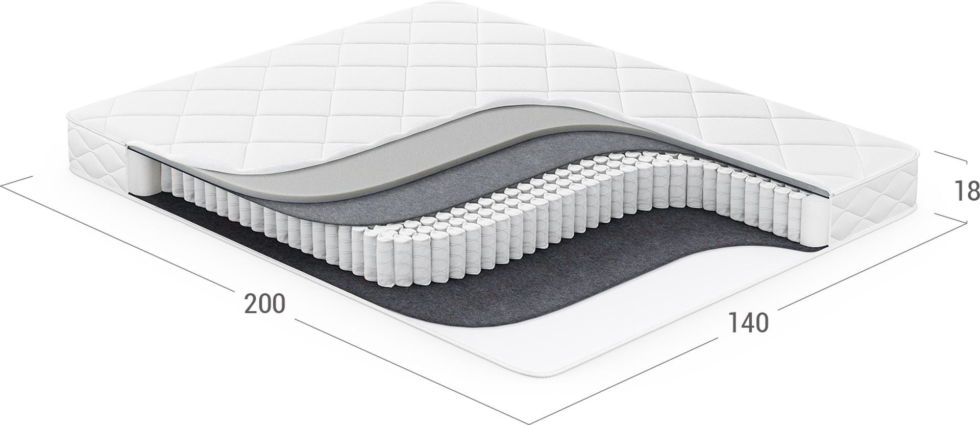 Надежно изолирует комфортные слои от соприкосновения с пружинным блоком и защищает материалы наполнения матраса от износа.