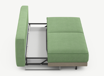 Механизм трансформации «Пантограф» подходит для ежедневного использования. Позволяет легко раскладывать и складывать диван, обеспечивая минимальный контакт дополнительных опор с напольным покрытием. Диван стоит на прямоугольных опорах, в то время как дополнительные остаются скрытыми, появляясь плавно и бесшумно в единственно нужный момент — при трансформации дивана в кровать.