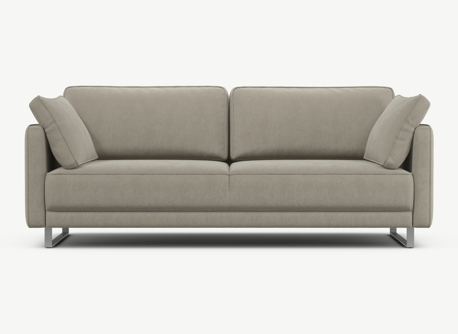 Механизм трансформации «Пантограф» подходит для ежедневного использования. Позволяет легко раскладывать и складывать диван, обеспечивая минимальный контакт дополнительных опор с напольным покрытием. Диван стоит на прямоугольных опорах, в то время как дополнительные остаются скрытыми, появляясь плавно и бесшумно в единственно нужный момент — при трансформации дивана в кровать.
