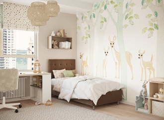 Разнообразие цветовой палитры позволит подобрать желаемый оттенок обивочной ткани. Использование светлых цветов поддержит настроение стиля «Сканди». Приглушенные насыщенные оттенки оформят кровать в стиле «Лофт». Нейтральные оттенки в цвет интерьера обыграют спальню в Современном стиле.