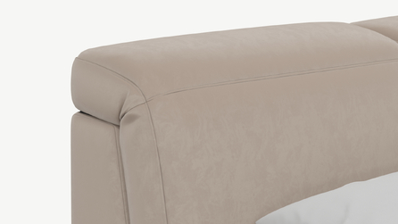 Изголовье подчеркивает эстетику MOON 1107, а также дарит дополнительный комфорт и уют спальному месту. Обратная сторона изголовья выполнена в мебельной ткани и позволяет ставить кровать в центре комнаты для зонирования пространства.