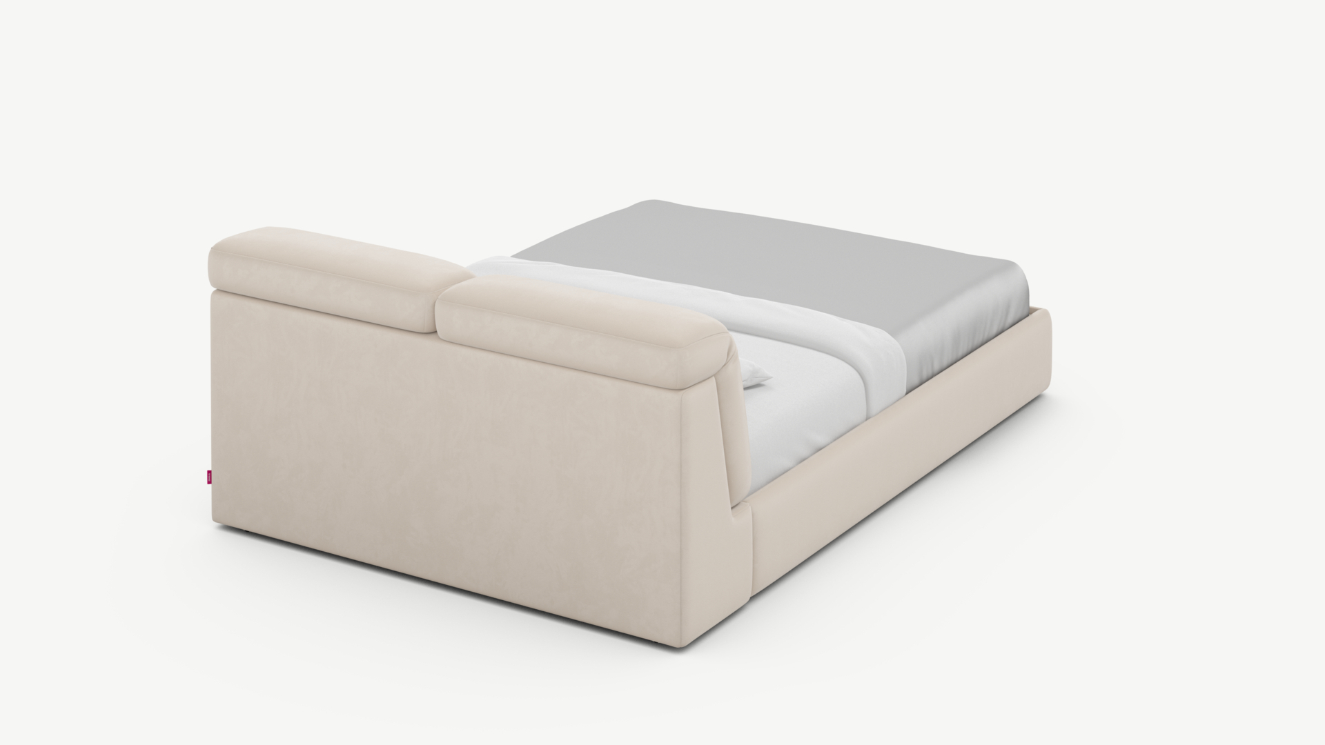 Изголовье подчеркивает эстетику MOON 1107, а также дарит дополнительный комфорт и уют спальному месту. Обратная сторона изголовья выполнена в мебельной ткани и позволяет ставить кровать в центре комнаты для зонирования пространства.