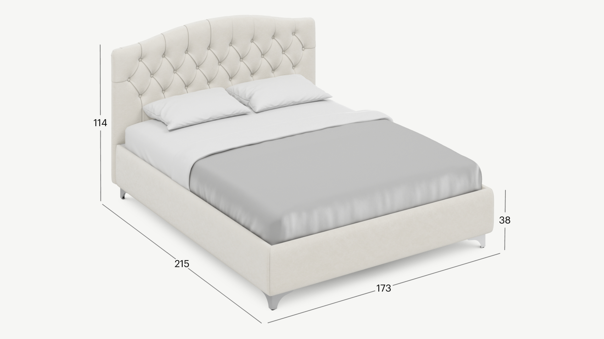 Кровать MOON 1157 создает ощущение праздника. Фигурное изголовье с классической каретной стяжкой формирует торжественный образ кровати, привнося в интерьер элементы дворцового стиля и роскоши.