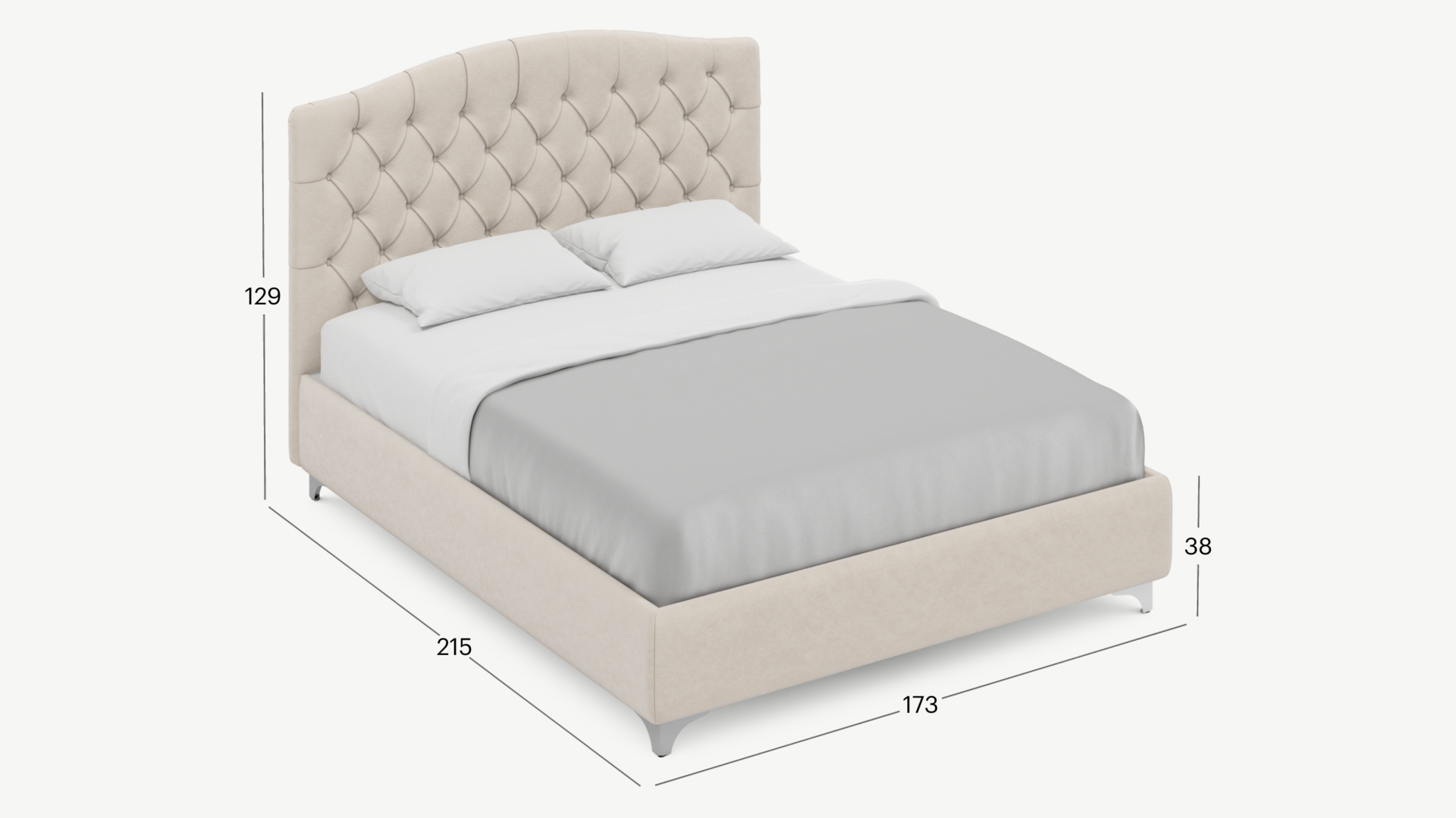 Кровать MOON 1157 создает ощущение праздника. Фигурное изголовье с классической каретной стяжкой формирует торжественный образ кровати, привнося в интерьер элементы дворцового стиля и роскоши.