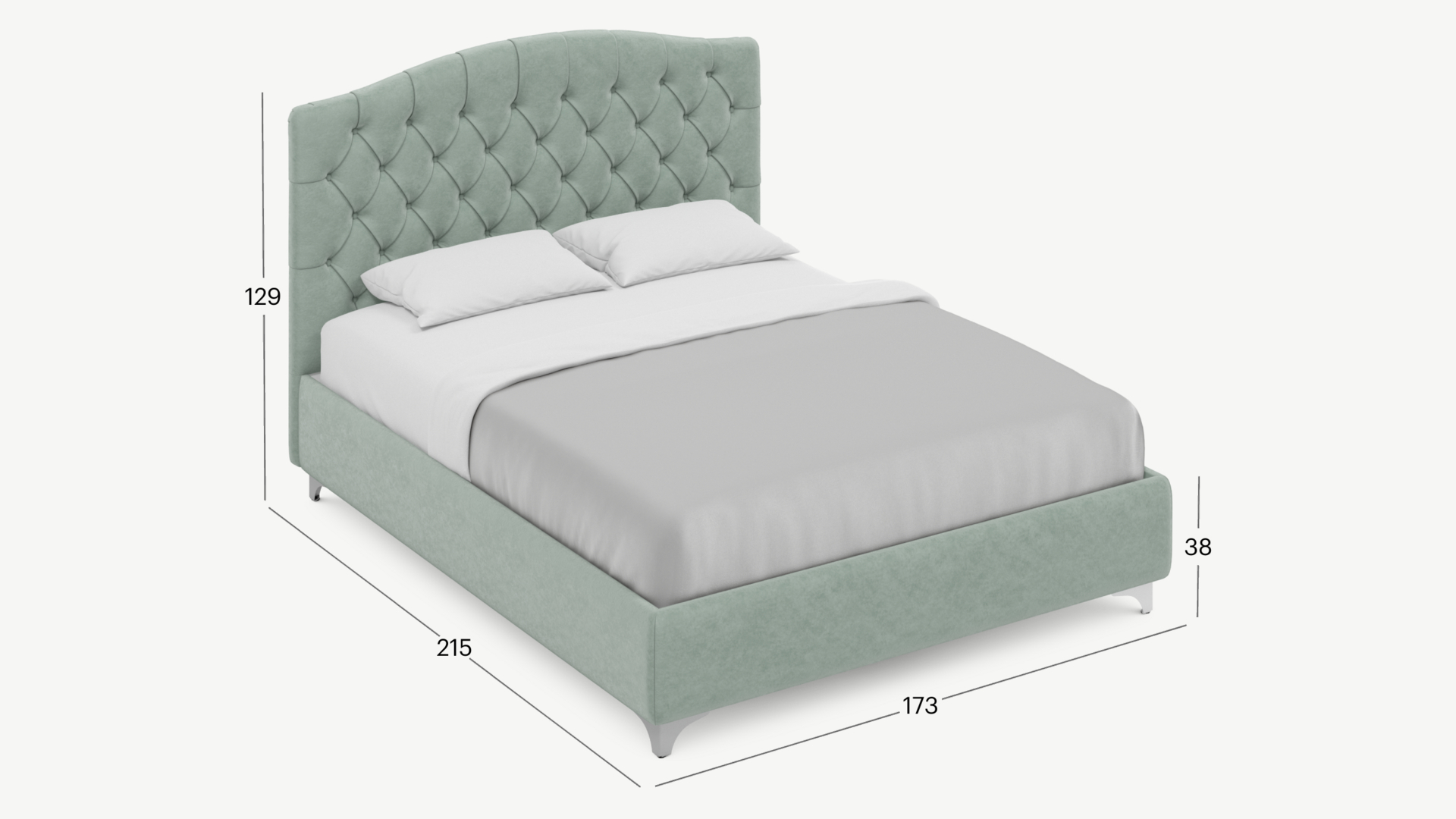 Кровать MOON 1157 создает ощущение праздника. Фигурное изголовье с классической каретной стяжкой формирует торжественный образ кровати, привнося в интерьер элементы дворцового стиля и роскоши.