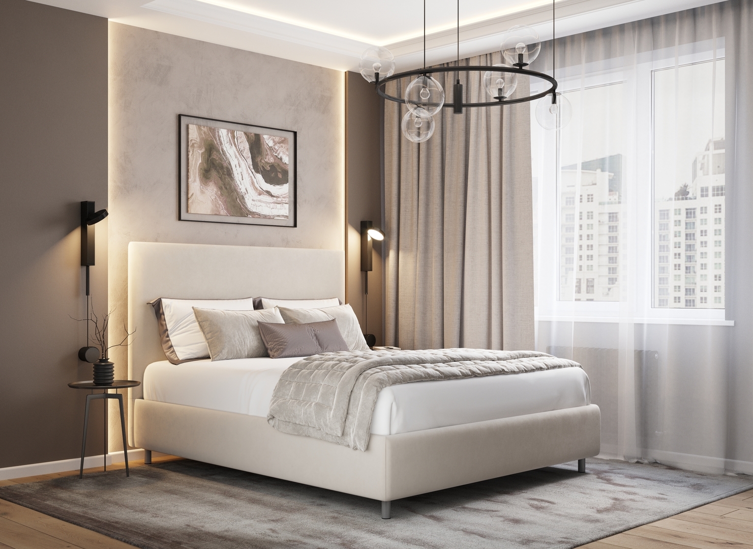 Разнообразие цветовой палитры позволит подобрать желаемый оттенок обивочной ткани. Использование светлых цветов поддержит настроение стиля «Сканди». Приглушенные насыщенные оттенки оформят кровать в стиле «Лофт». Нейтральные оттенки в цвет интерьера обыграют спальню в Современном стиле.