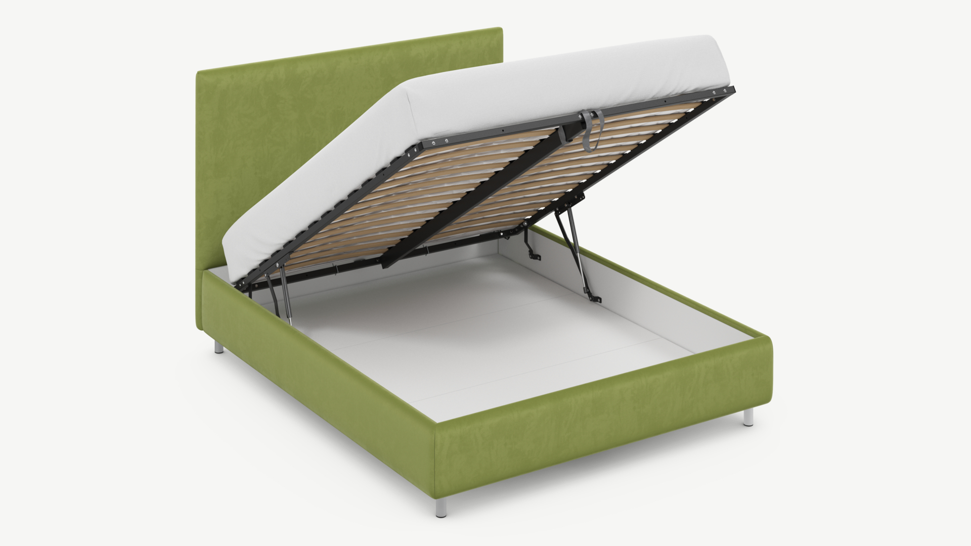 • Скрытая под основанием вместительная емкость без внутренних перегородок позволяет использовать всю площадь подкроватного пространства для хранения вещей.