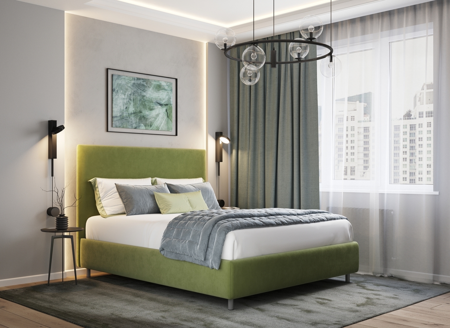 Разнообразие цветовой палитры позволит подобрать желаемый оттенок обивочной ткани. Использование светлых цветов поддержит настроение стиля «Сканди». Приглушенные насыщенные оттенки оформят кровать в стиле «Лофт». Нейтральные оттенки в цвет интерьера обыграют спальню в Современном стиле.