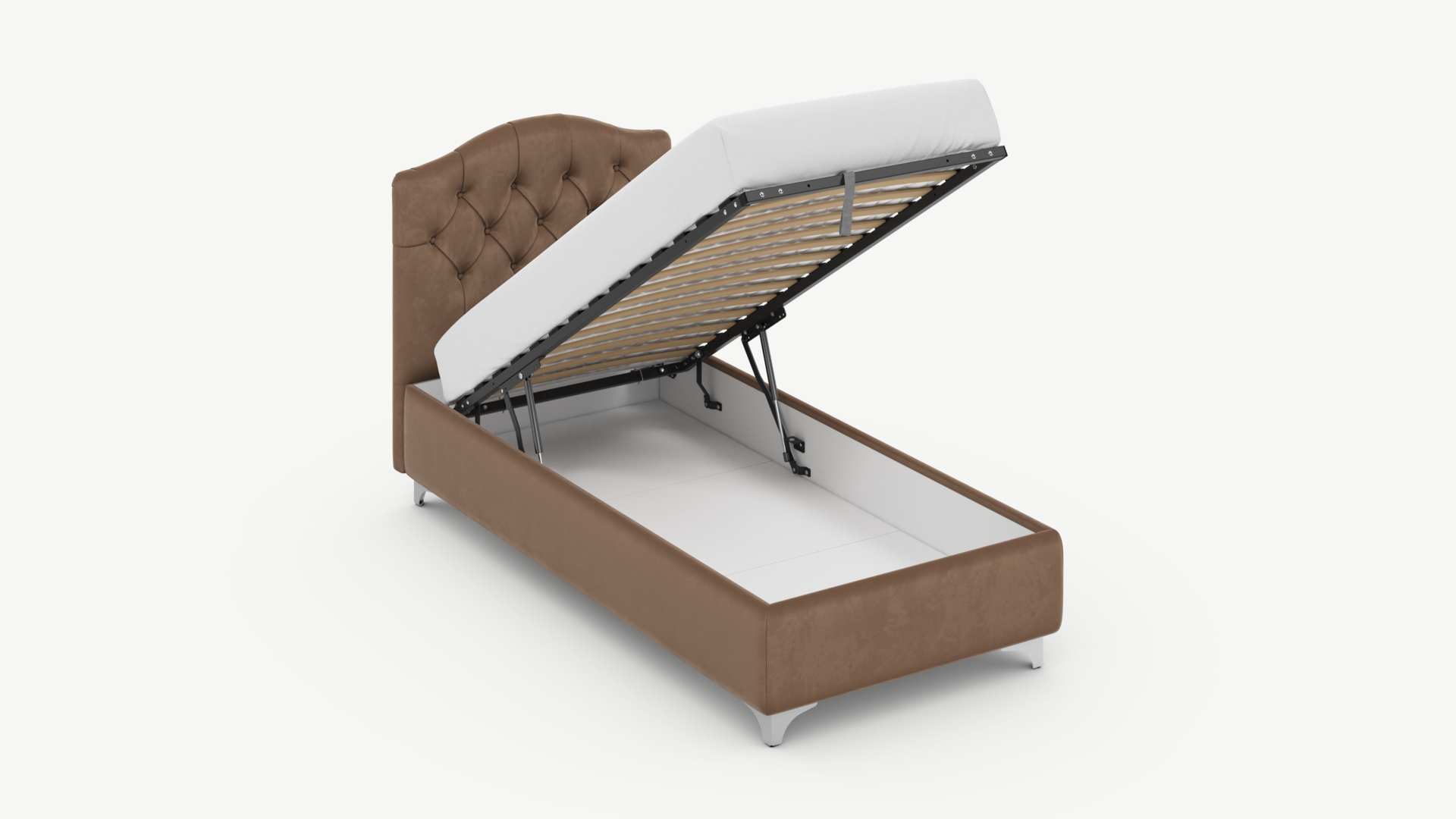 - Скрытая под основанием вместительная емкость без внутренних перегородок позволяет использовать всю площадь подкроватного пространства для хранения вещей.