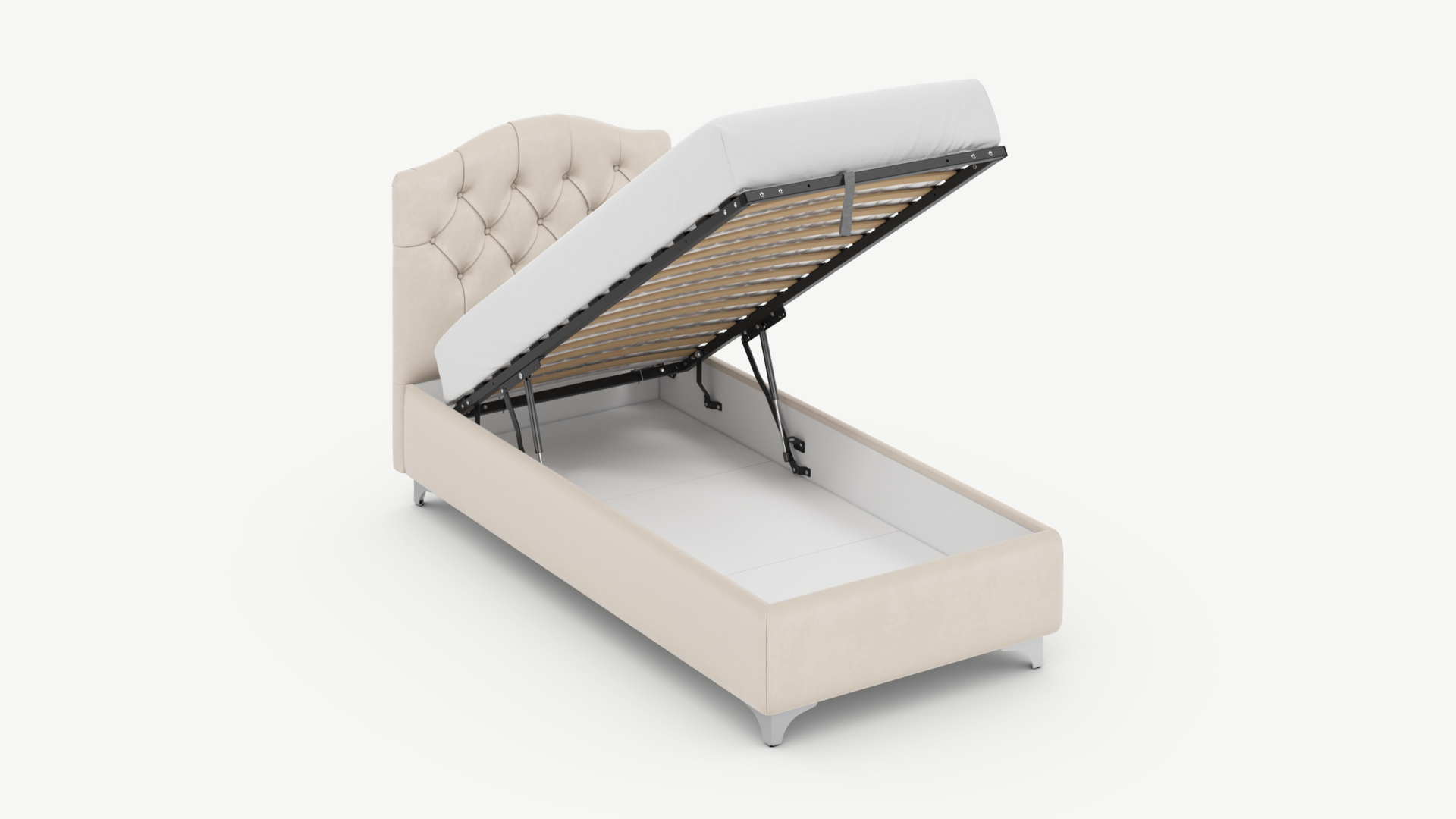 • Скрытая под основанием вместительная емкость без внутренних перегородок позволяет использовать всю площадь подкроватного пространства для хранения вещей.
