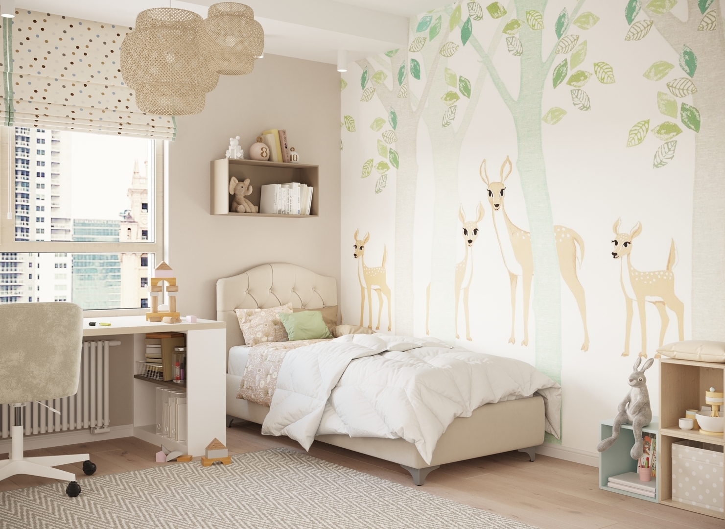 Разнообразие цветовой палитры позволит подобрать желаемый оттенок обивочной ткани. Использование светлых цветов поддержит настроение стиля «Сканди». Приглушенные насыщенные оттенки оформят кровать в стиле «Лофт». Нейтральные оттенки в цвет интерьера обыграют спальню в Современном стиле.