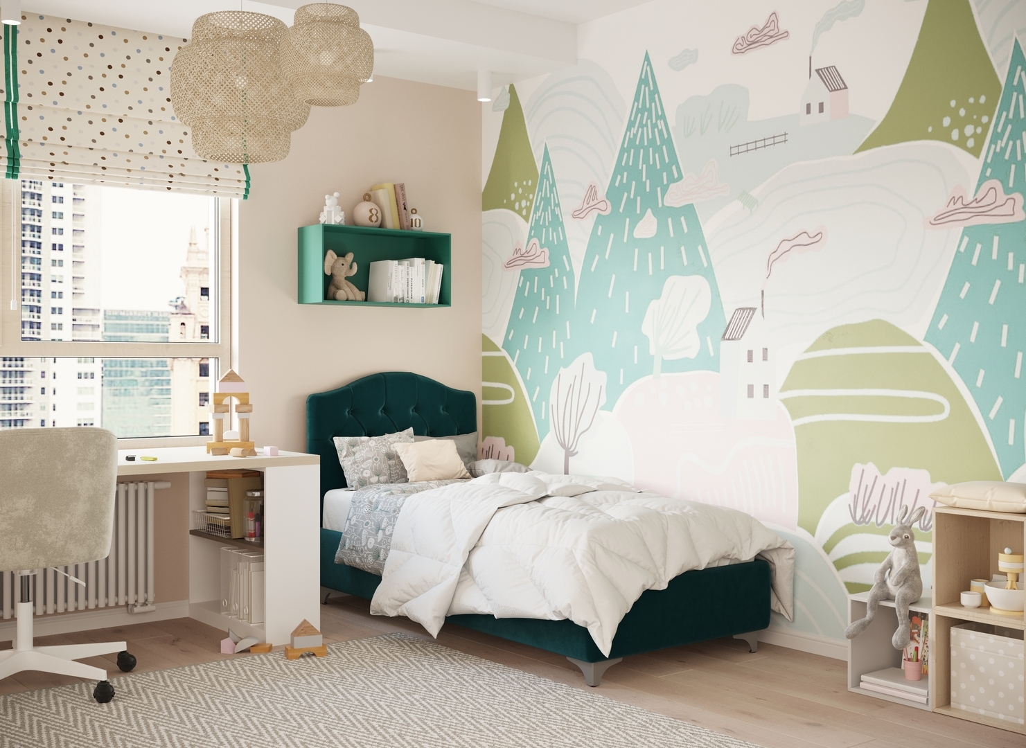 Разнообразие цветовой палитры позволит подобрать желаемый оттенок обивочной ткани. Использование светлых цветов поддержит настроение стиля «Сканди». Приглушенные насыщенные оттенки оформят кровать в стиле «Лофт». Нейтральные оттенки в цвет интерьера обыграют спальню в Современном стиле.