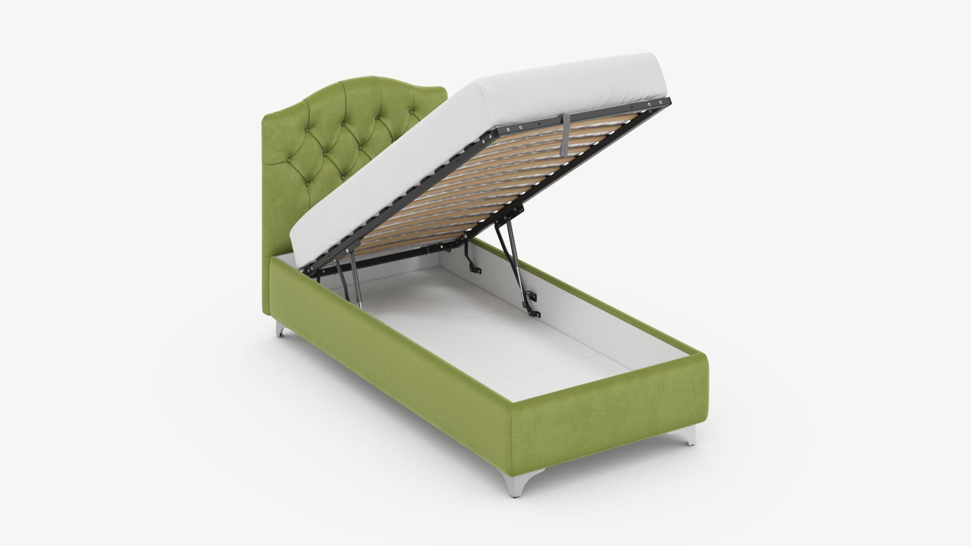 • Скрытая под основанием вместительная емкость без внутренних перегородок позволяет использовать всю площадь подкроватного пространства для хранения вещей.