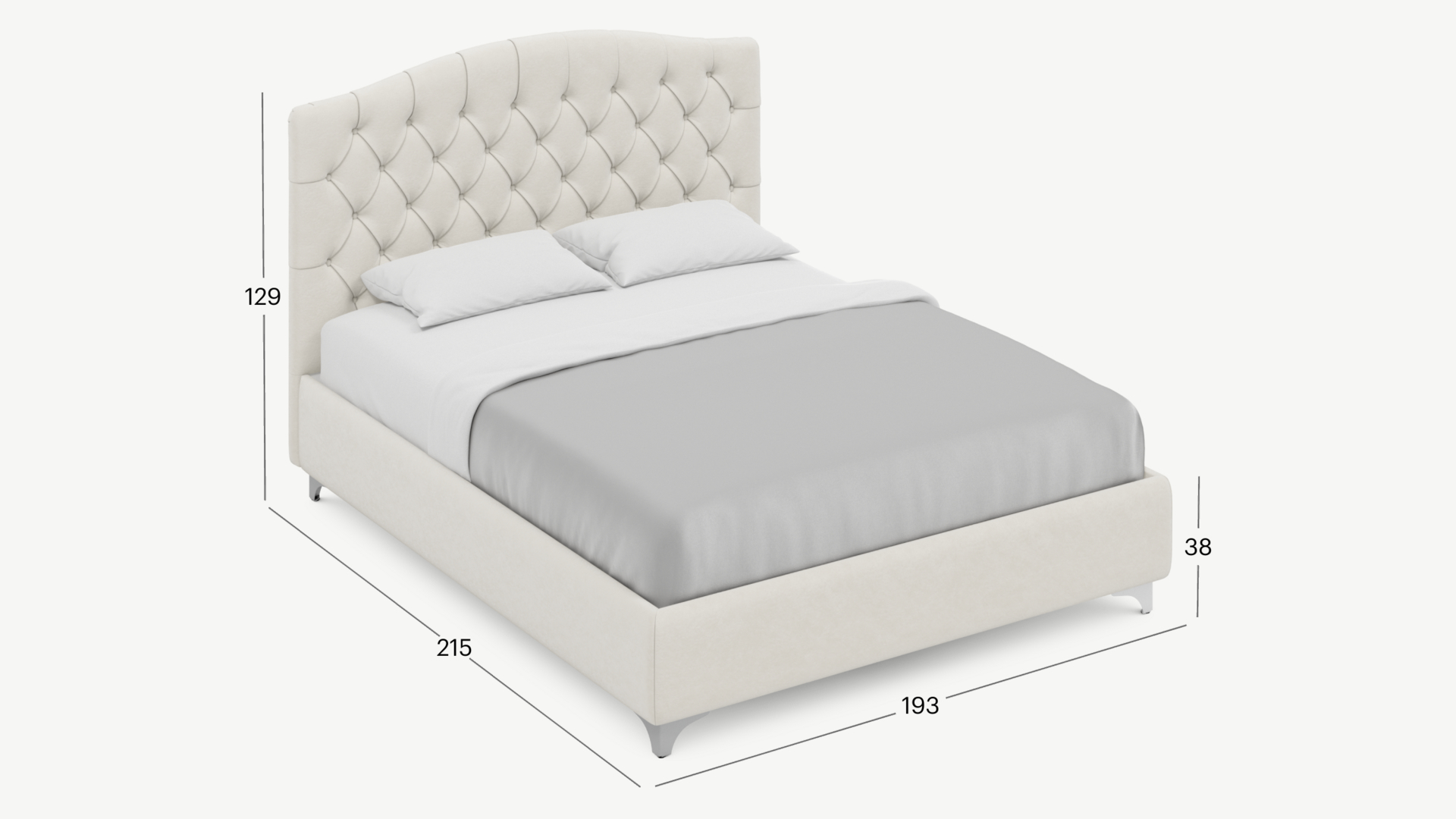 Кровать MOON 1157 создает ощущение праздника. Фигурное изголовье с классической каретной стяжкой формирует торжественный образ кровати, привнося в интерьер элементы дворцового стиля и роскоши.